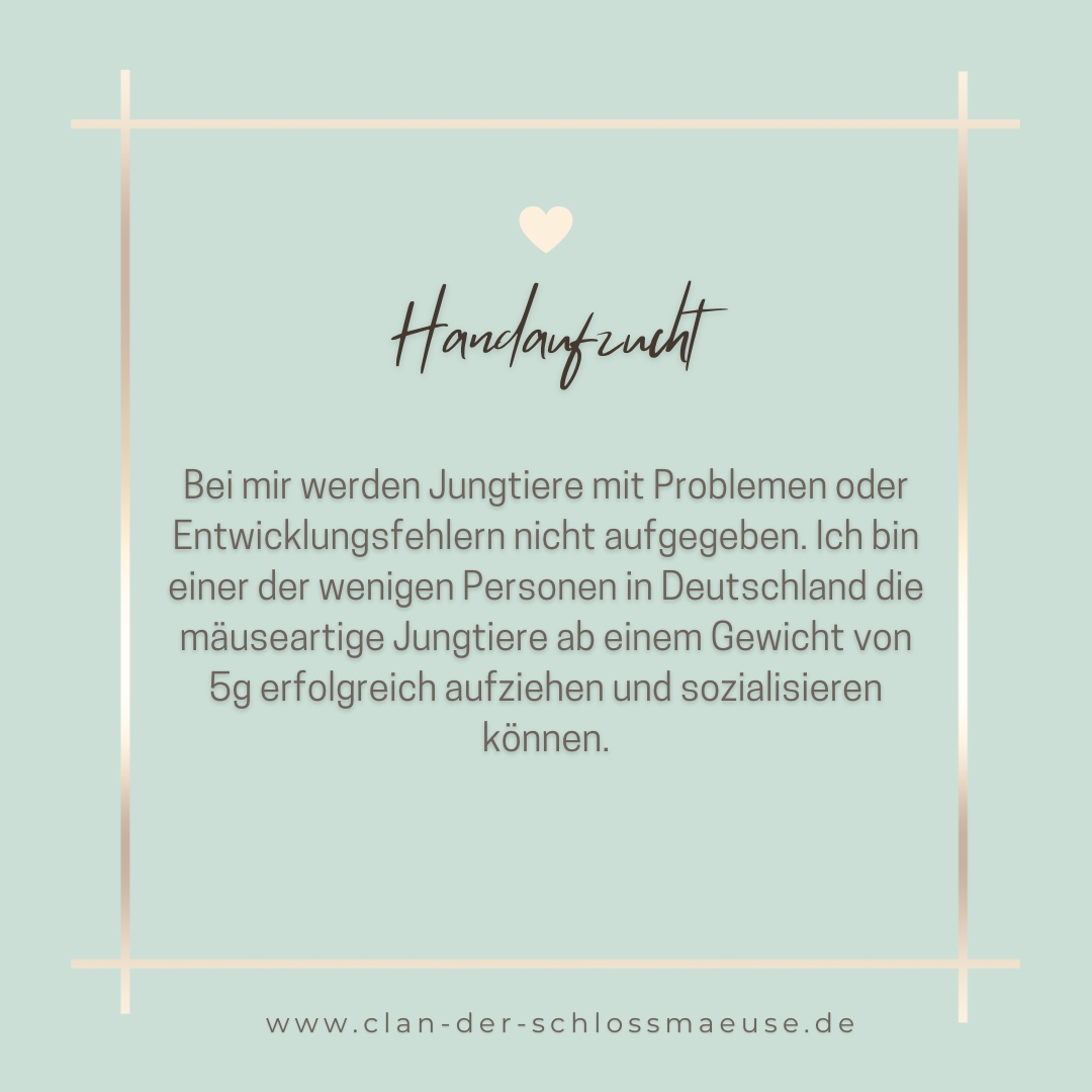 Wenn es sein muss, ich ziehe Jungtiere per Hand auf. Sollte es dafür notwendig ist, stehe ich gerne jede Stunde auf und rette so ein kleines Leben. So habe ich bereits erfolgreich ab 3 g aufgezogen.